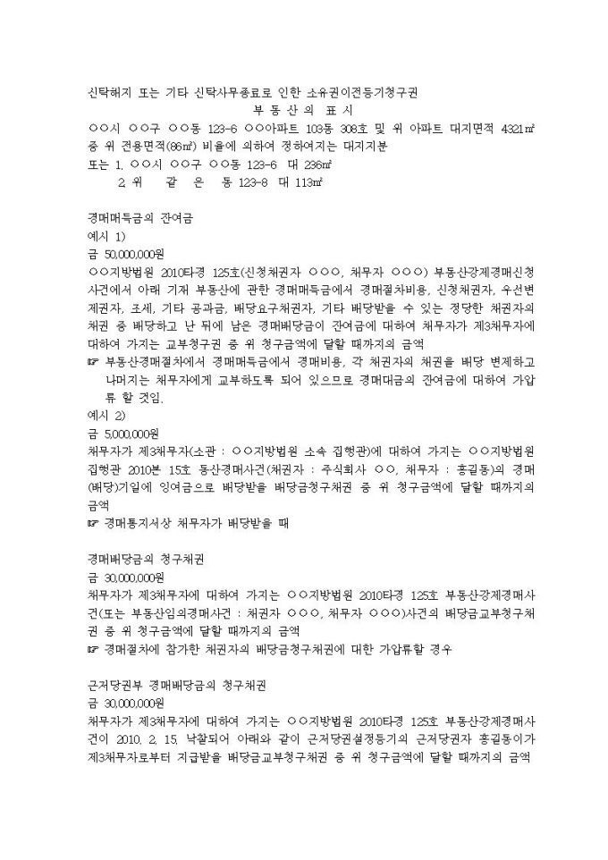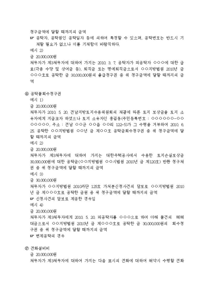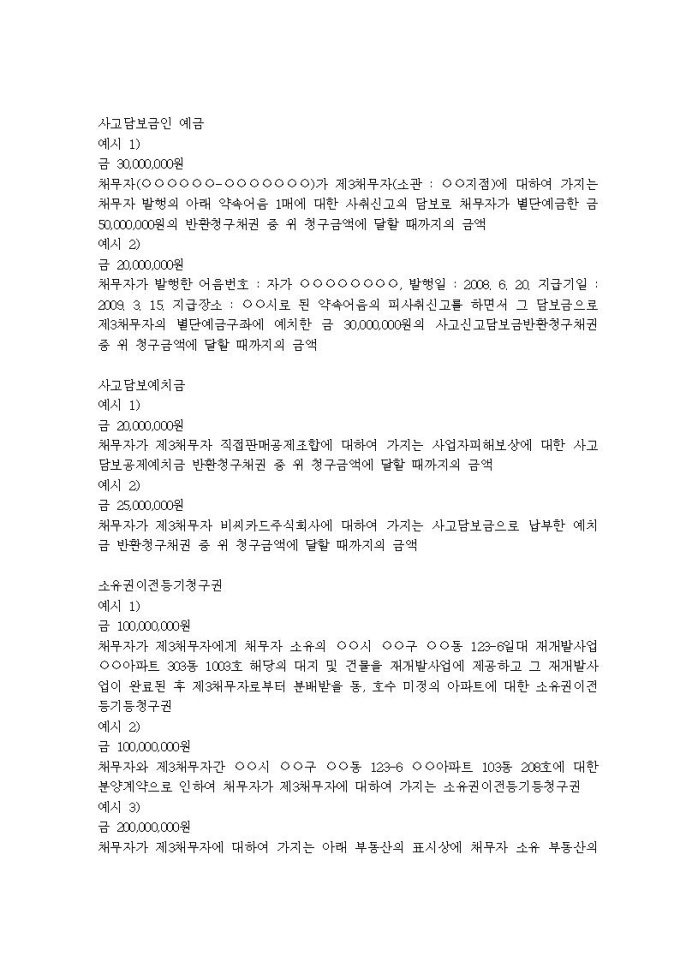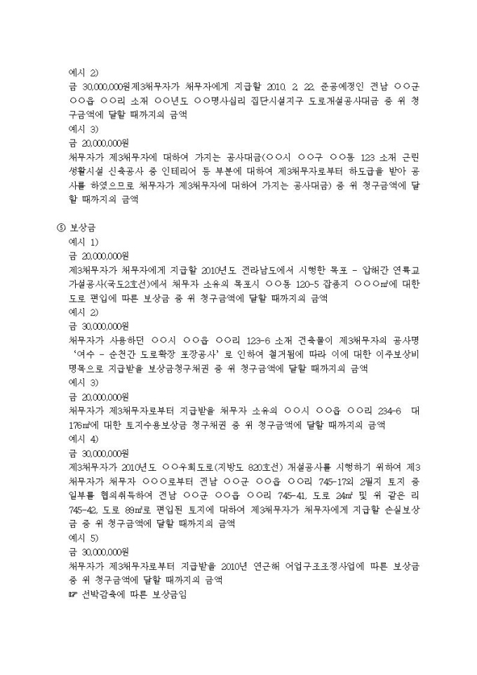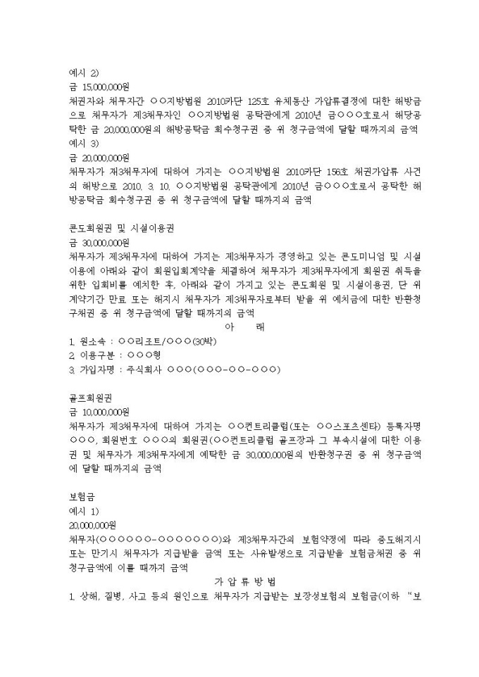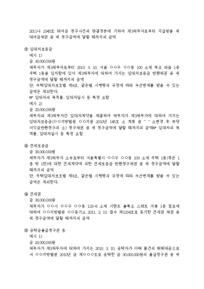 9,000원/월가압류할 채권의 표시례입니다.