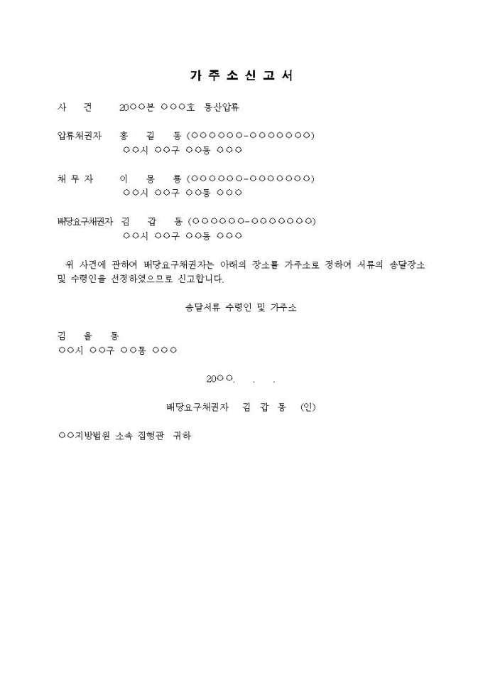 가주소신고서