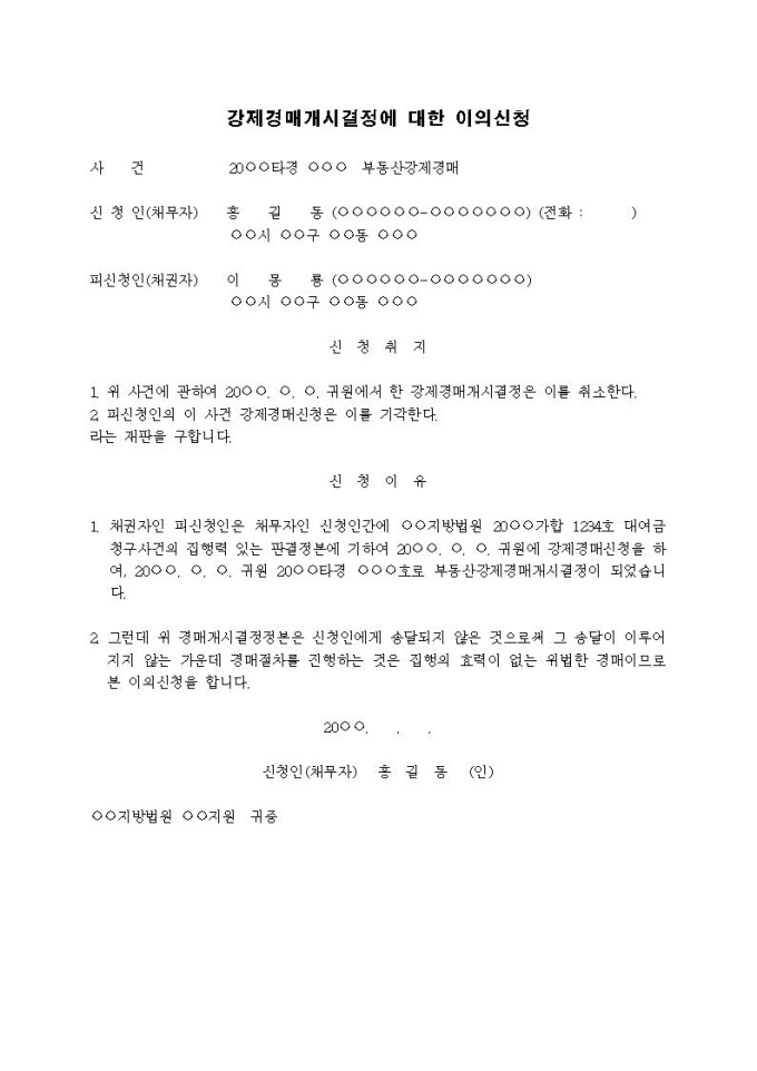 9,000원/월강제경매개시결정에 대한 이의신청(개시결정정본 미송달)입니다.