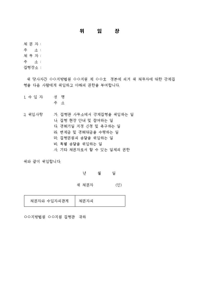 9,000원/월강제집행 위임장 양식(2)입니다.