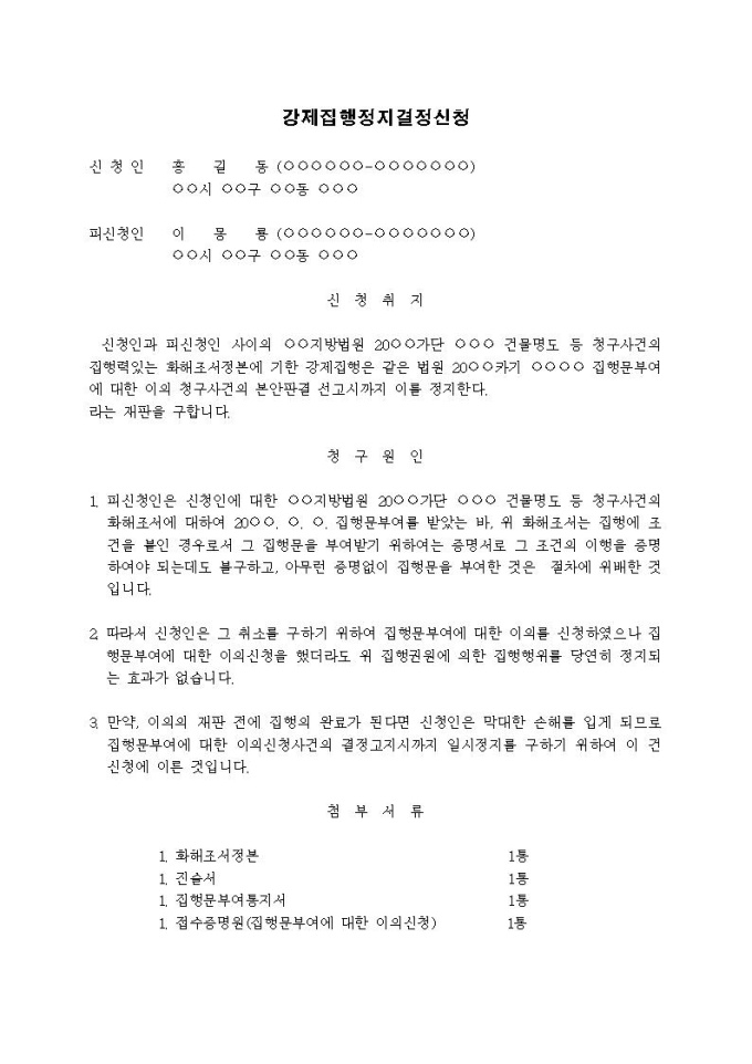 9,000원/월강제집행정지결정신청서(집행문부여에 대한 이의)입니다.