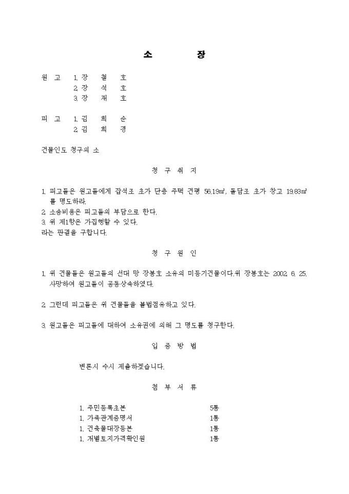 9,000원/월건물인도청구 소장(건물인도, 공동점유사건)입니다.