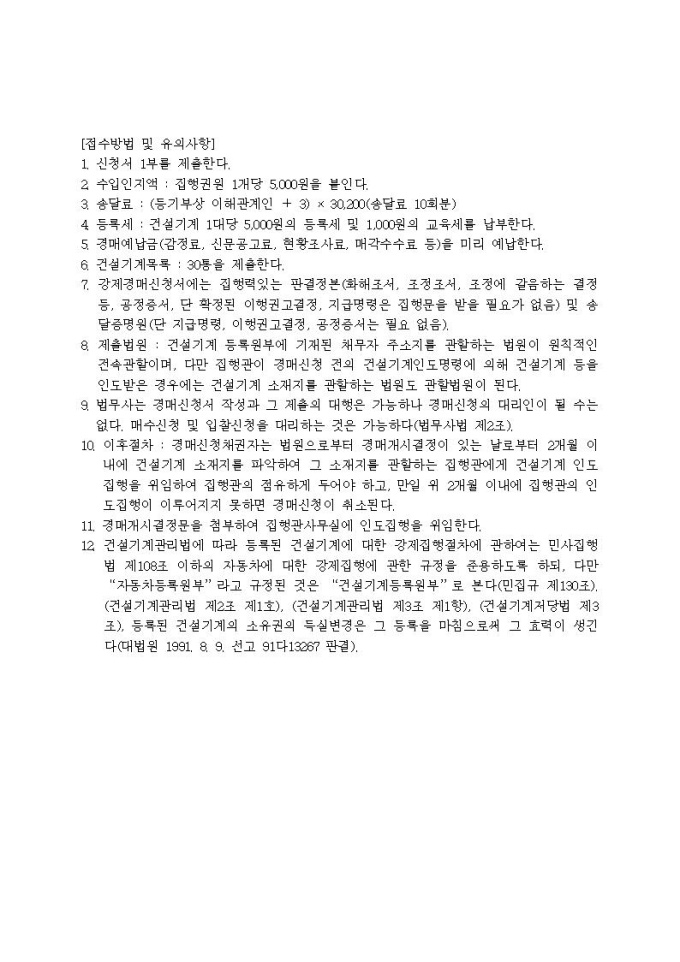 건설기계강제경매신청서