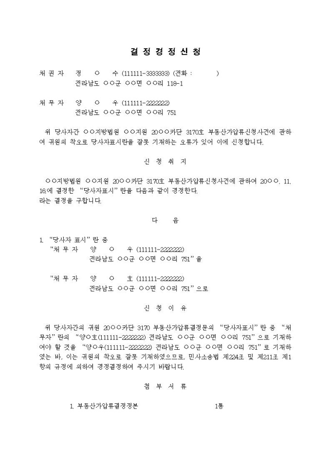 결정경정신청서(당사자표시)
