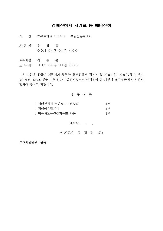 9,000원/월경매신청서 서기료 등 배당신청서(법무사보수료 등)입니다.