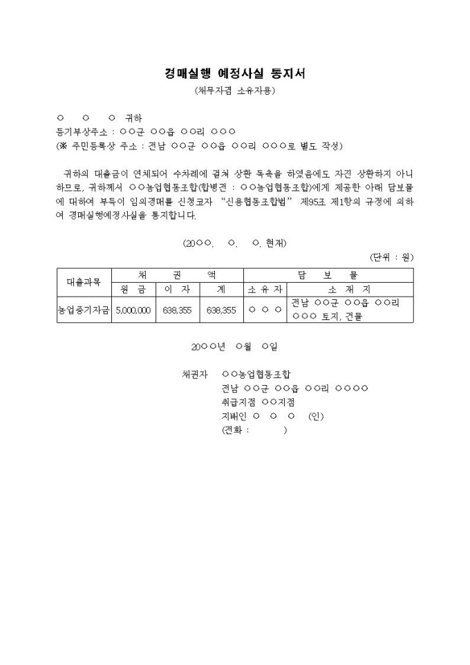 9,000원/월경매실행 예정사실통지서입니다.