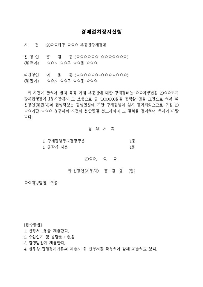 9,000원/월경매절차정지신청서(청구이의)입니다.