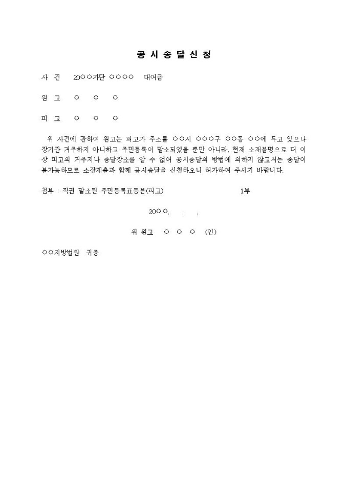 9,000원/월공시송달신청서(소장과 함께 제출하는 경우)입니다.