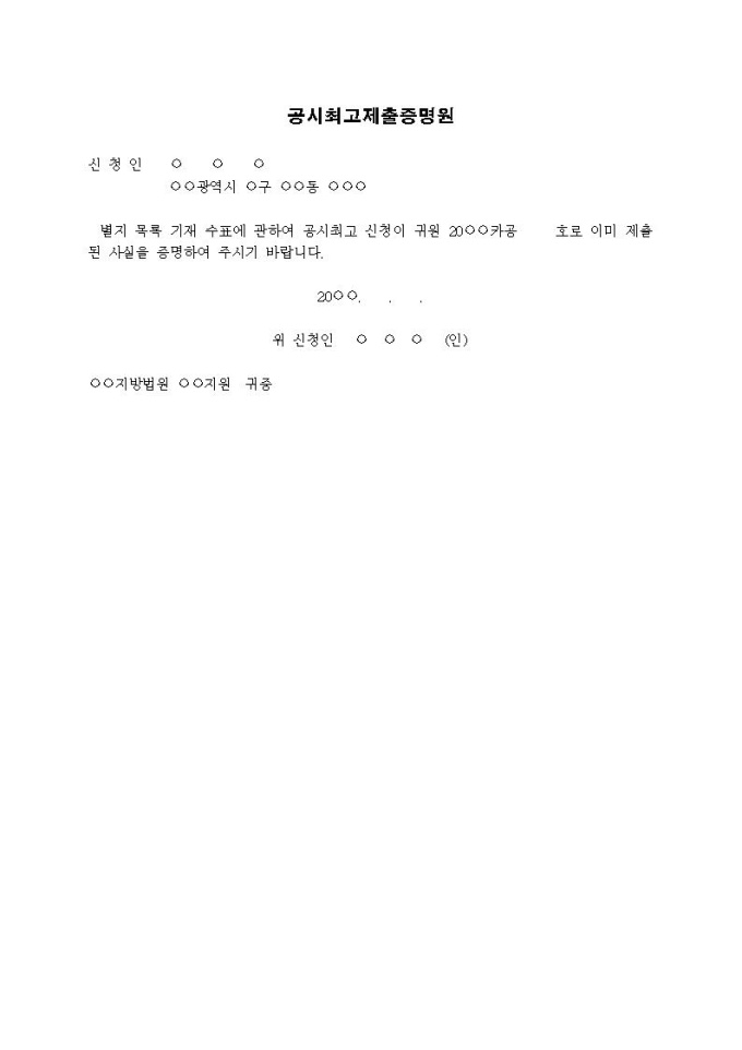 공시최고제출증명원