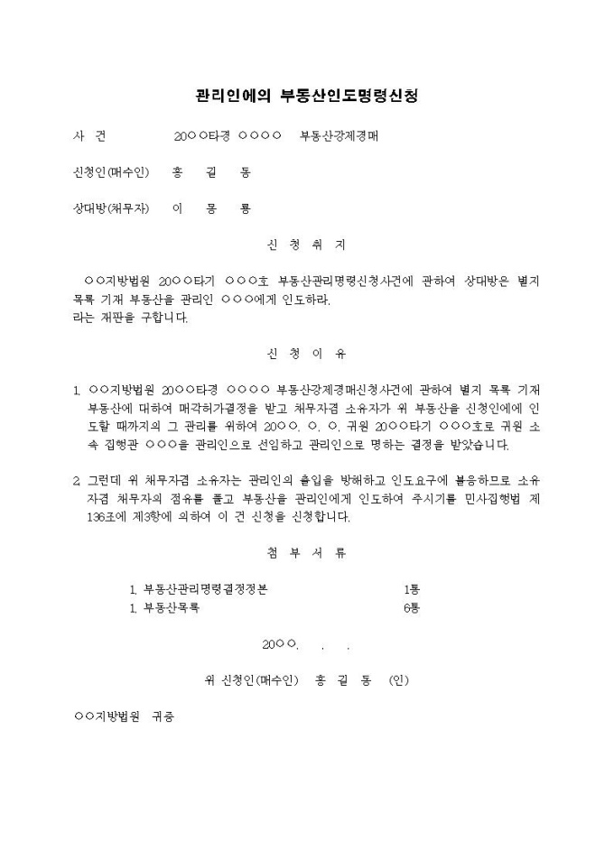 9,000원/월관리인에의 부동산인도명령신청서(2)입니다.