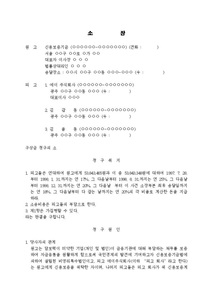9,000원/월구상금청구 소장(신용보증기금의 대위변제)(2)입니다.