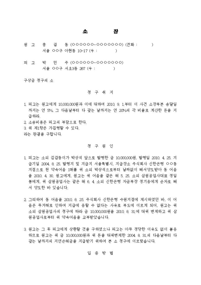9,000원/월구상금청구 소장(약속어음)입니다.