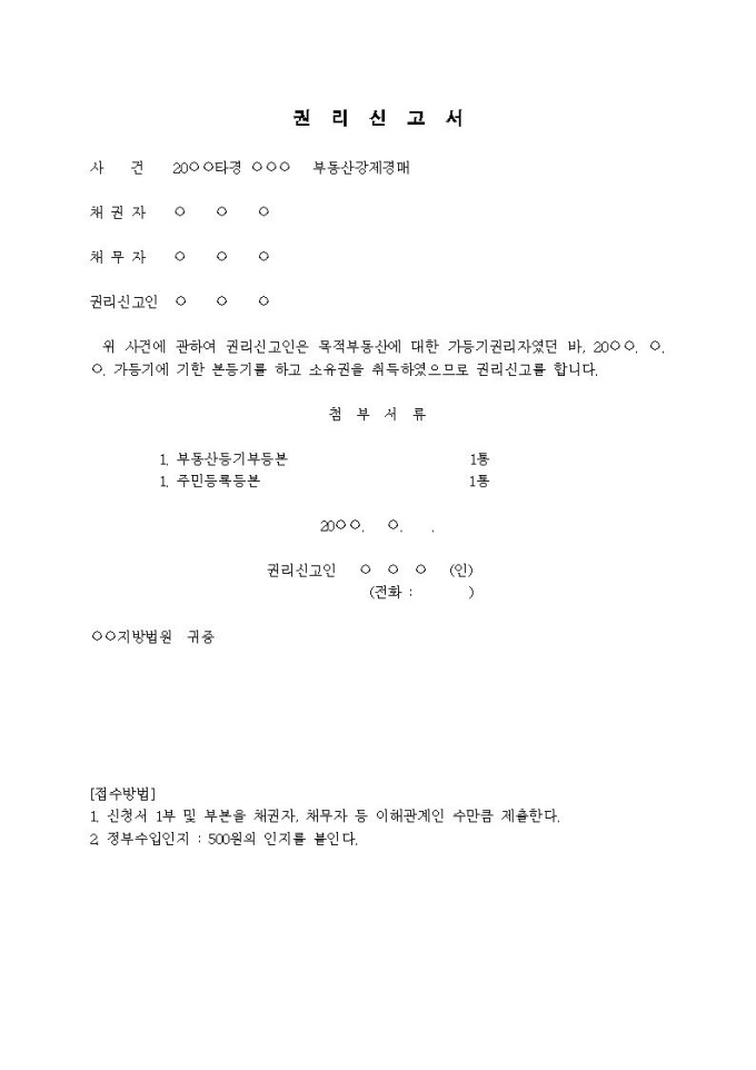 9,000원/월권리신고서입니다.