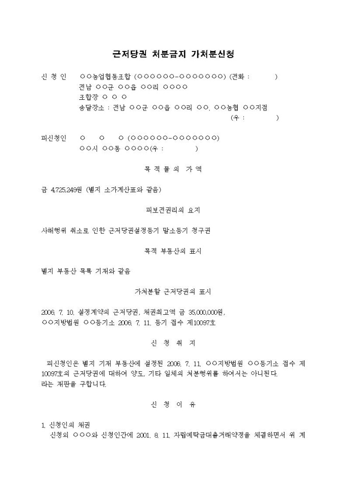 근저당권처분금지 가처분신청서(사해행위취소)(3)