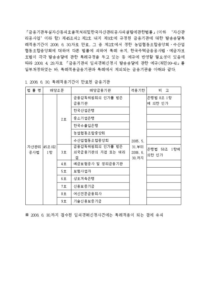 금융기관 임의경매 발송특례 적용과 관련하여입니다.