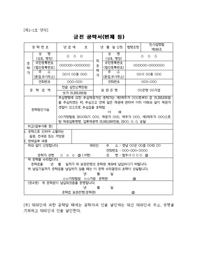 9,000원/월금전 공탁서(변제 등)입니다.