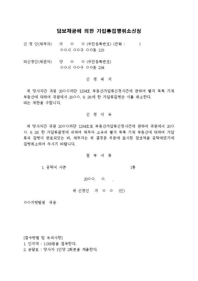 9,000원/월담보제공에 의한 가압류집행취소신청서입니다.