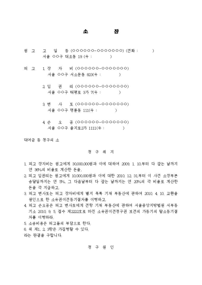 대여금등청구 소장(통정허위표시, 채권자대위권)입니다.