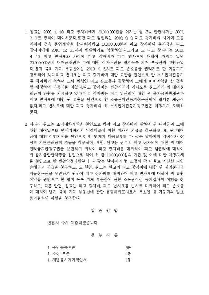 대여금등청구 소장(통정허위표시, 채권자대위권)