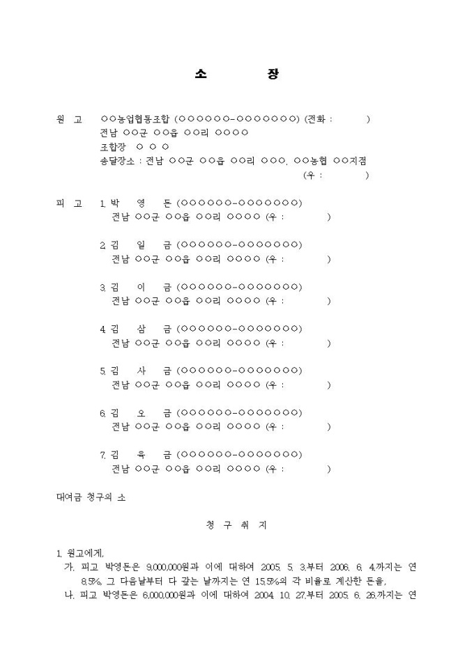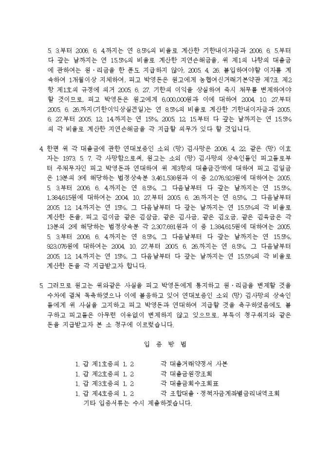 대여금청구 소장(사망)(1)