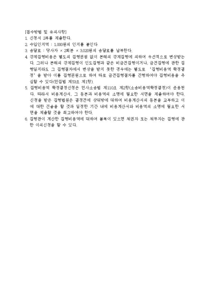 9,000원/월대체집행비용확정결정신청서입니다.