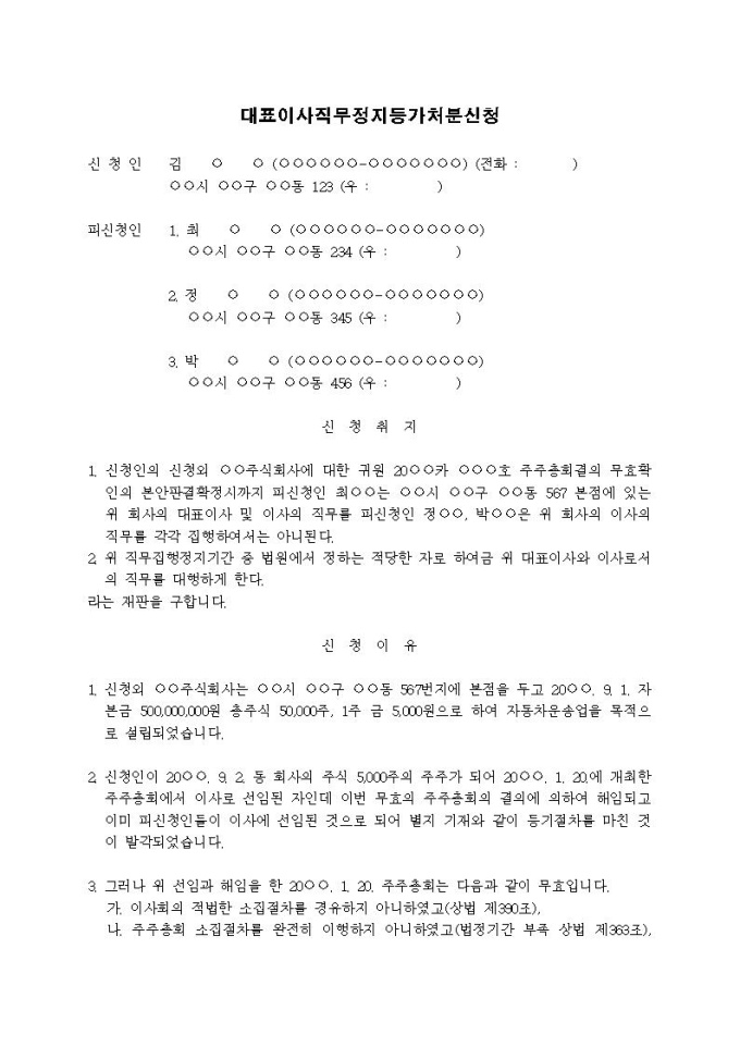 9,000원/월대표이사직무정지등 가처분신청서입니다.