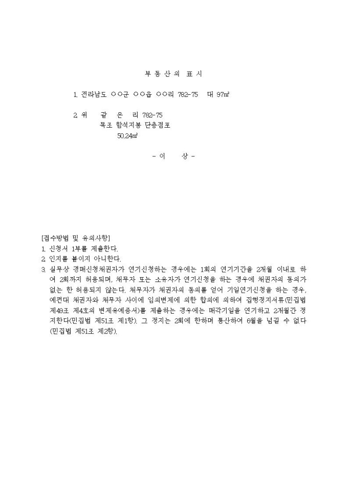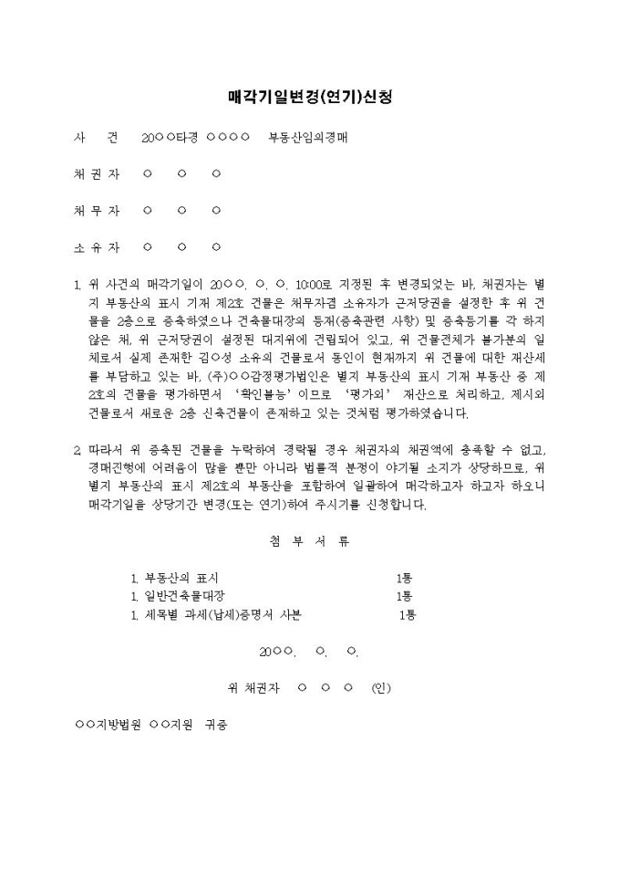 매각기일변경(연기)신청서(일괄경매)입니다.