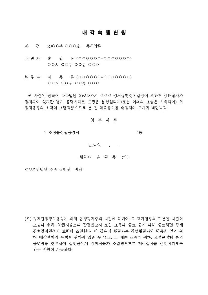 9,000원/월매각속행신청서(조정불성립)입니다.