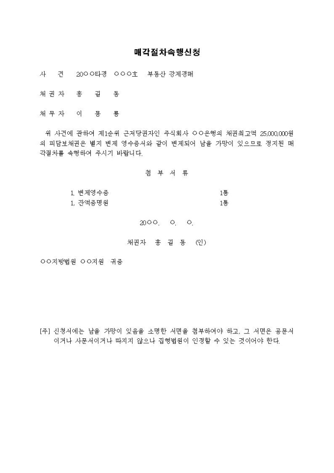 매각절차속행신고서(남을 가망성 있음)