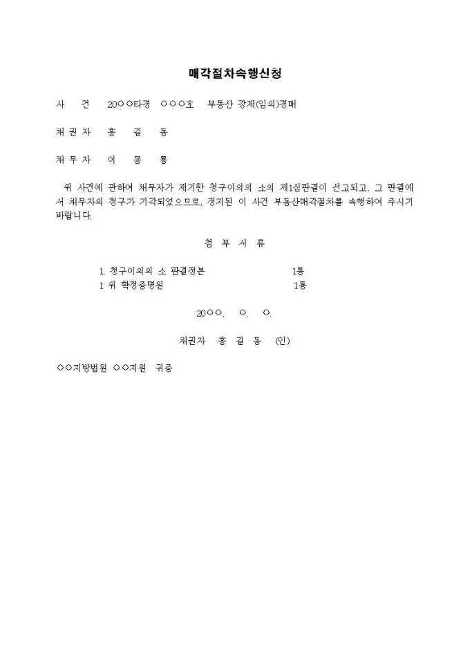 9,000원/월매각절차속행신고서(청구이의의 소 기각)입니다.