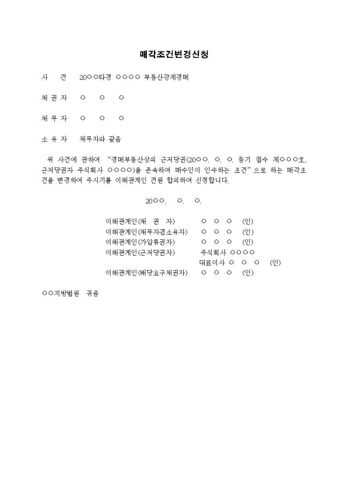 매각조건변경신청서(근저당권을 인수)입니다.