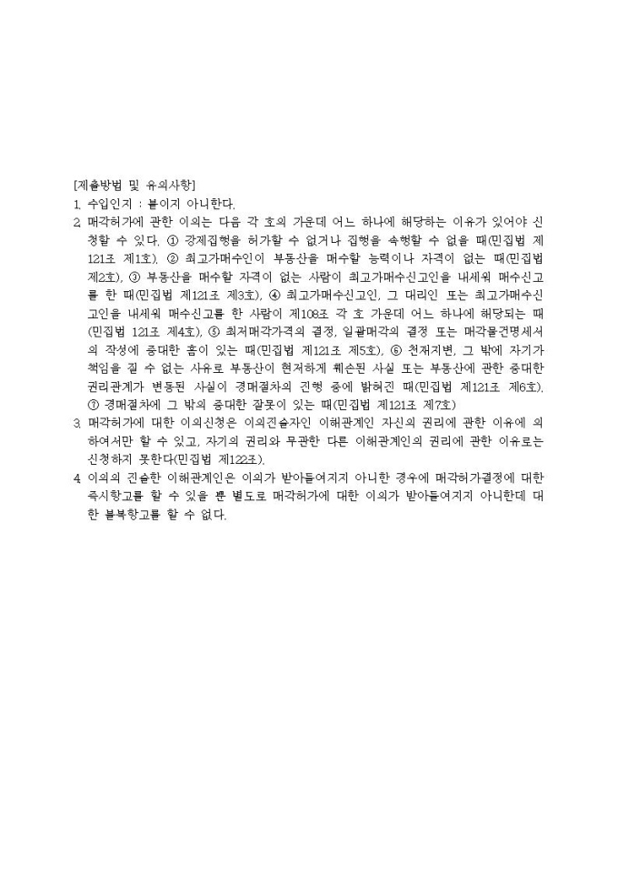 매각허가에 대한 이의신청서(임대의 기간등 미공고)