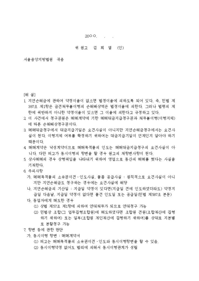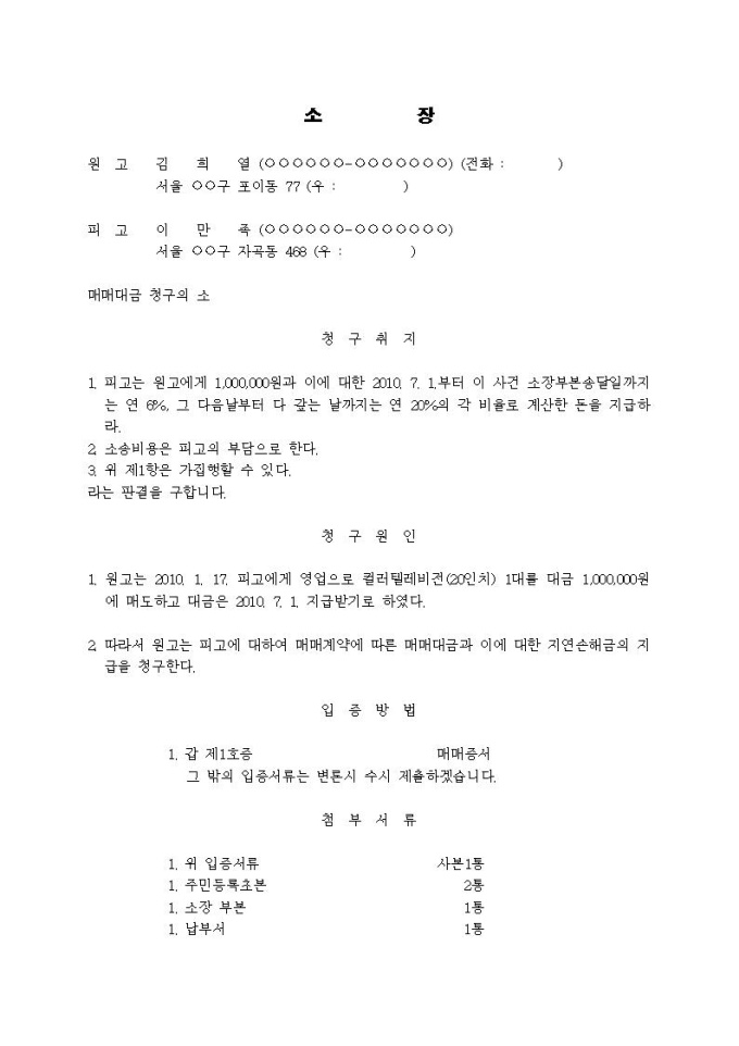 매매대금청구 소장입니다.