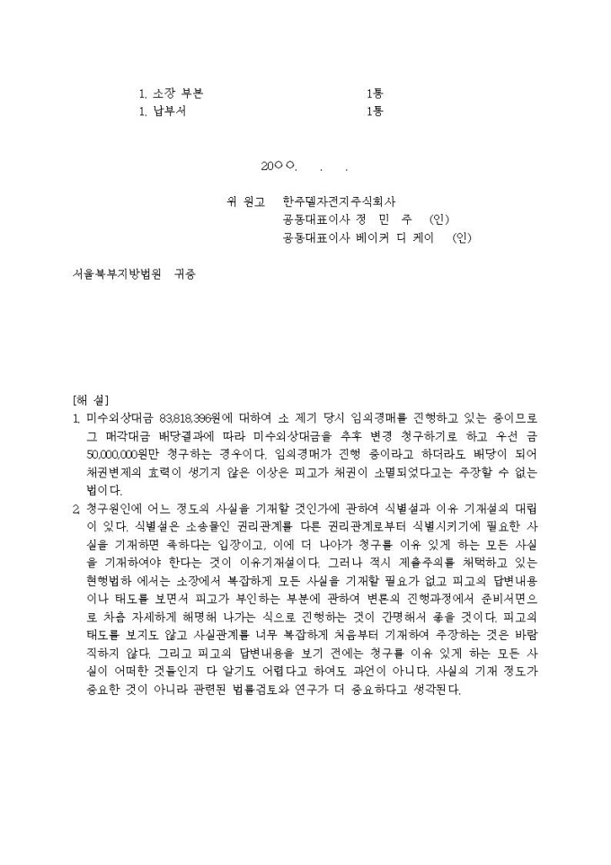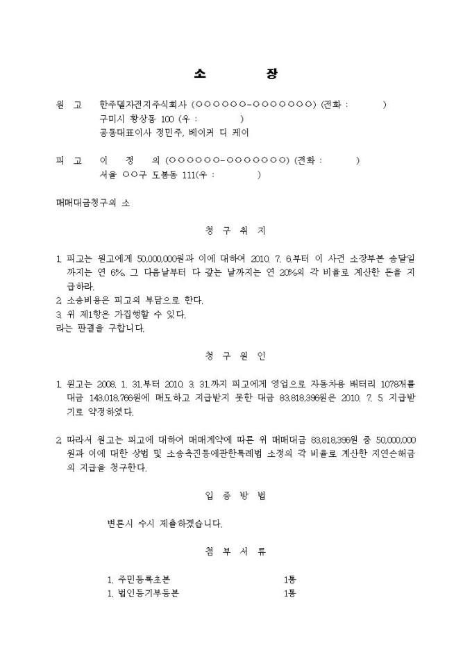 9,000원/월매매대금청구 소장(2)입니다.