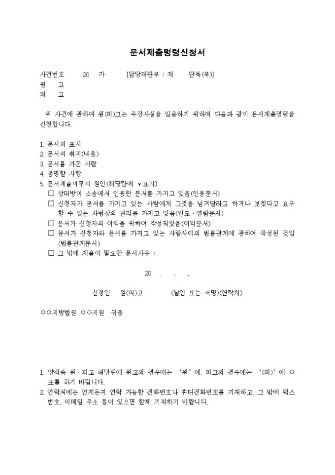 9,000원/월문서제출명령신청서입니다.