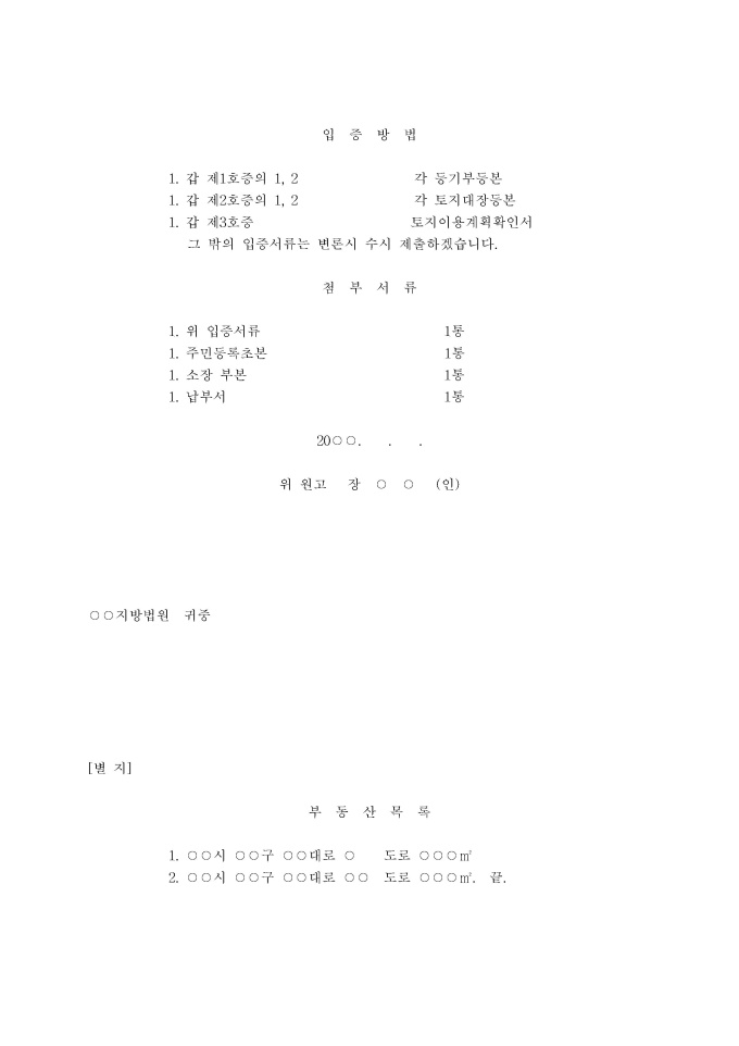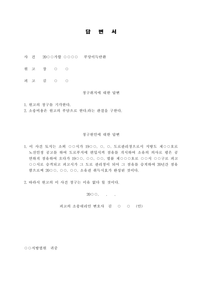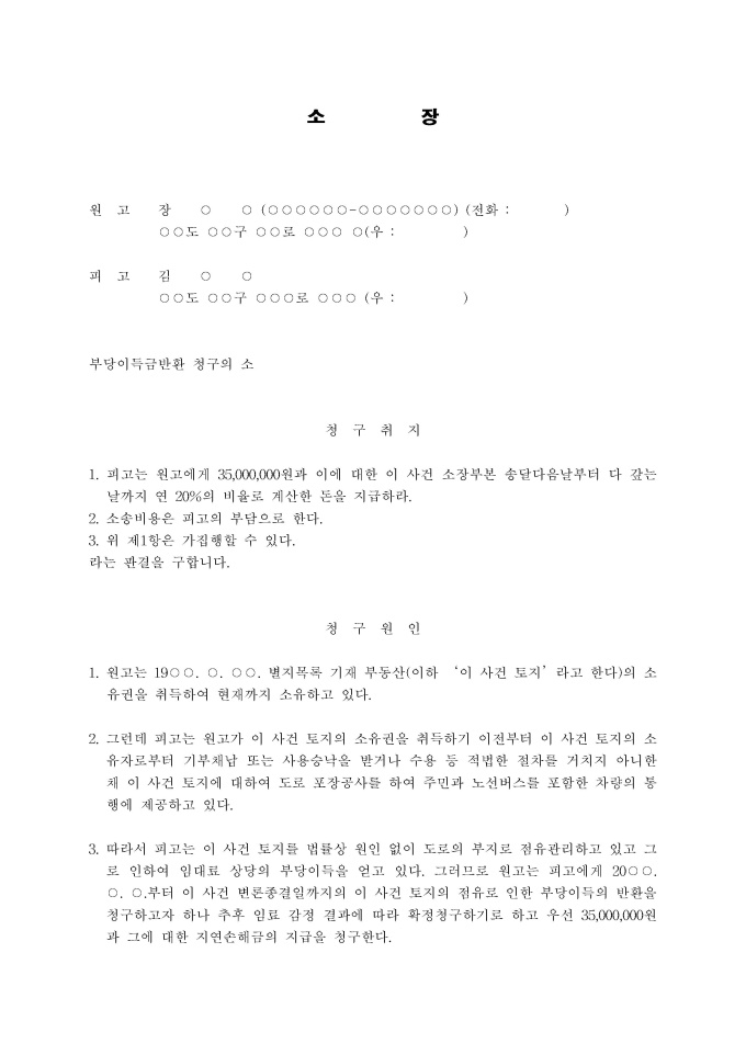 부당이득금반환청구 소장(도로로 무단점유, 잠정청구)