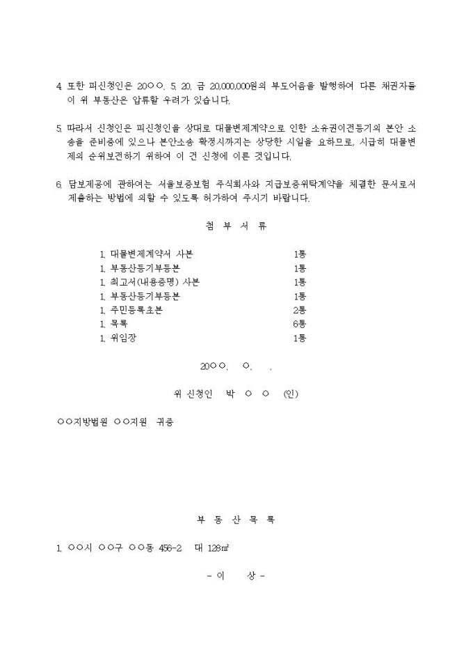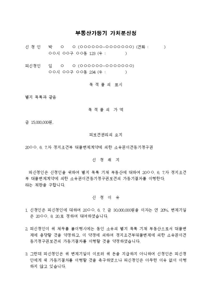 9,000원/월부동산가등기 가처분신청서(대물변제계약에 의한 소유권이전등기청구권)입니다.