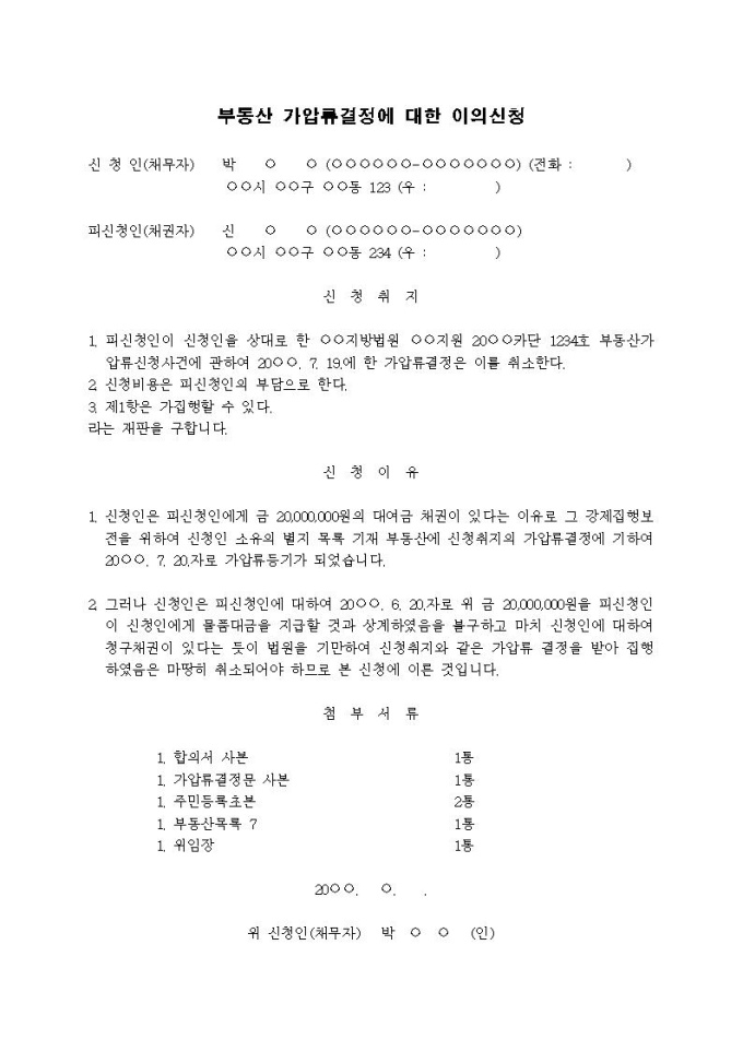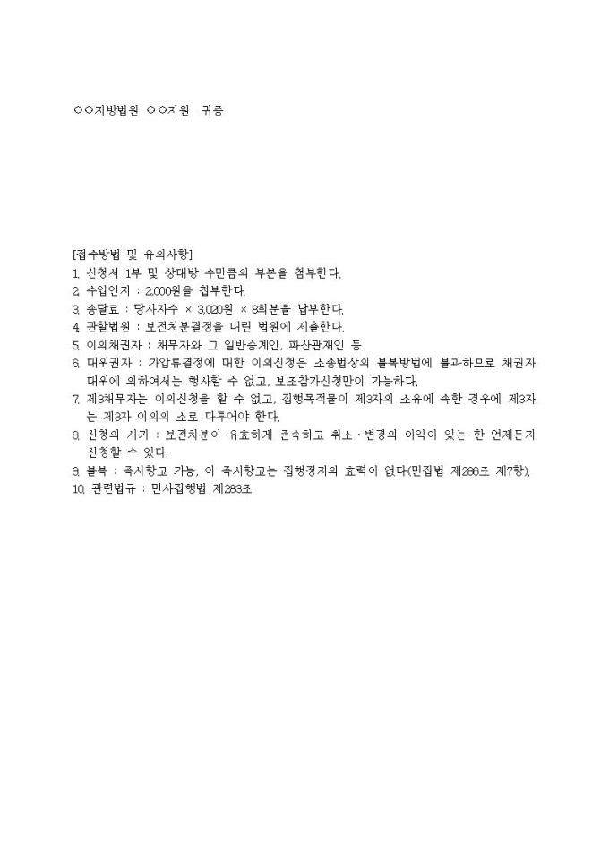 9,000원/월부동산가압류결정에 대한 이의신청서입니다.
