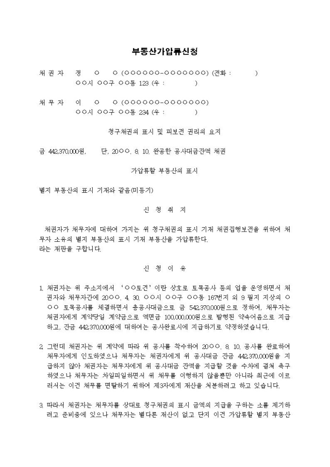 9,000원/월부동산가압류신청서(공사대금, 미등기부동산)입니다.