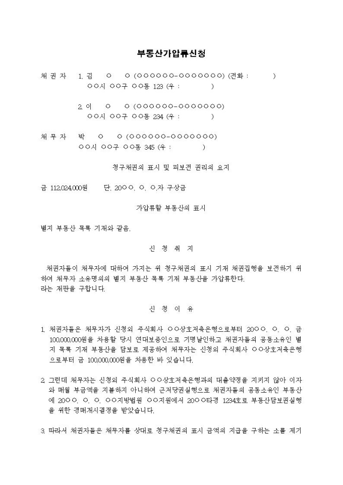부동산가압류신청서(구상금)입니다.