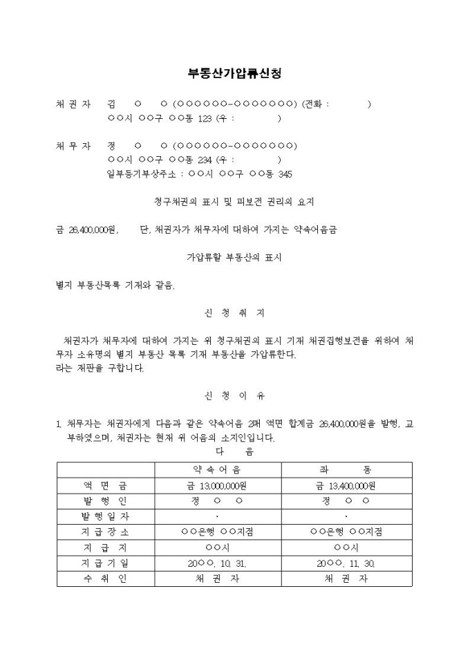부동산가압류신청서(기한 미도래의 약속어음금 채권)입니다.