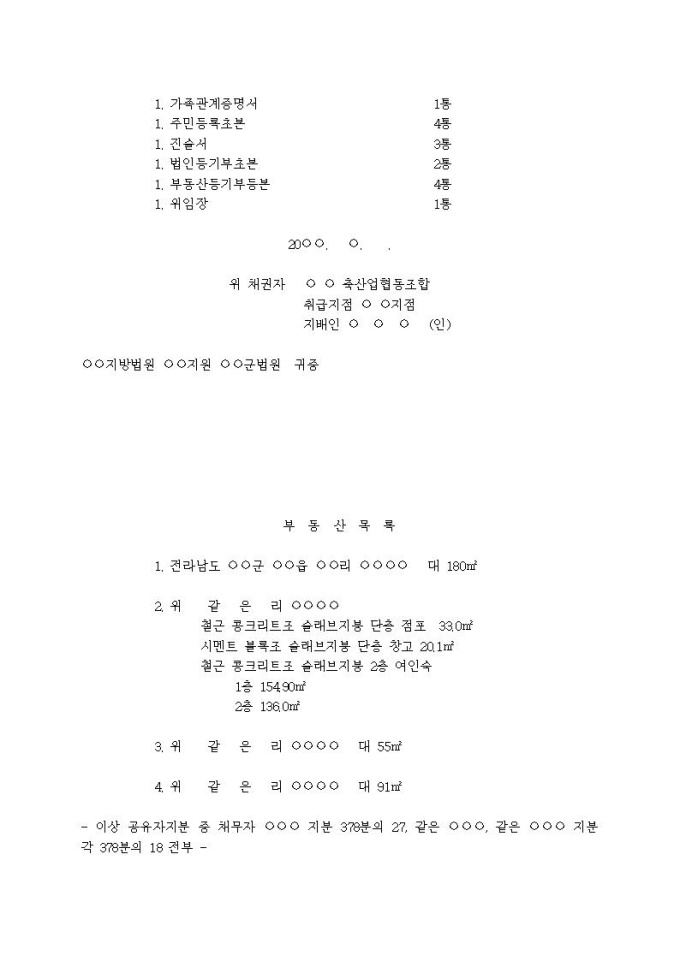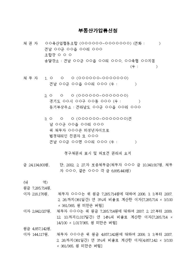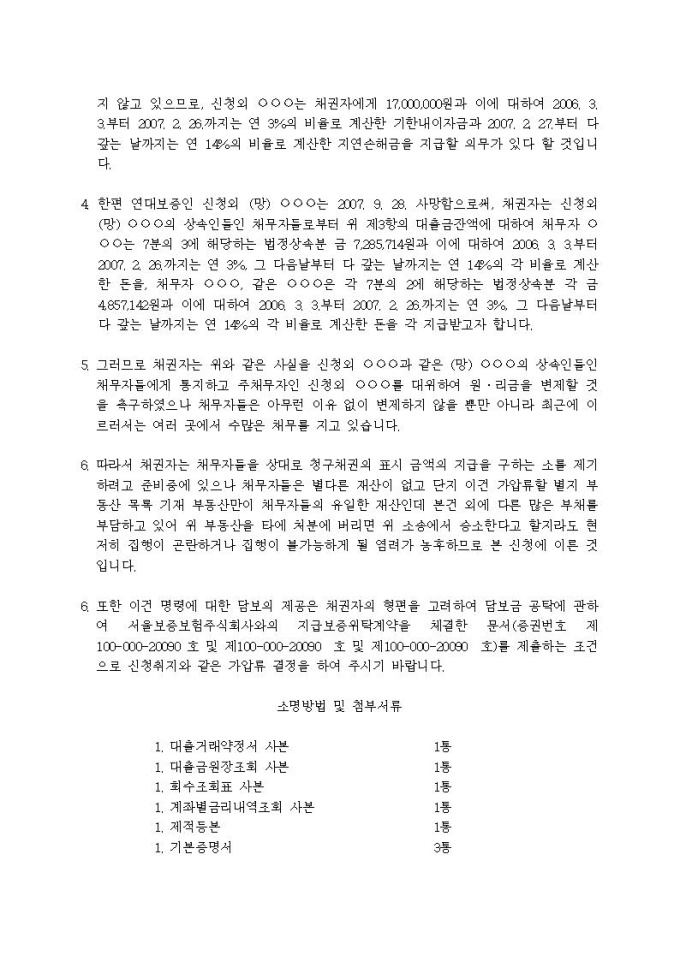 부동산가압류신청서(보증채무금(사망))입니다.