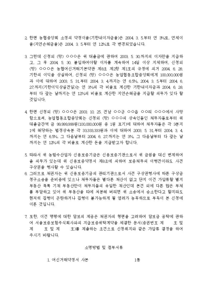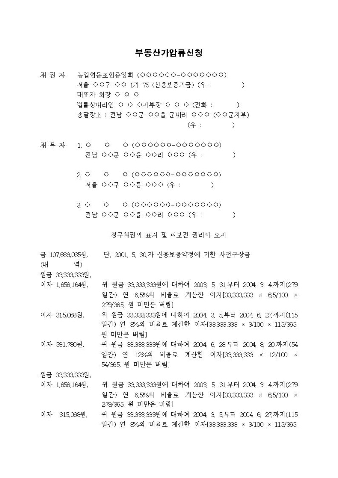 9,000원/월부동산가압류신청서(사전구상금(사망))입니다.