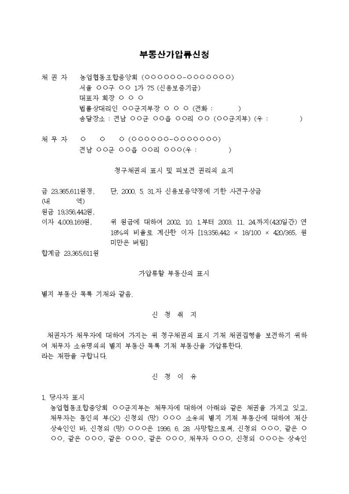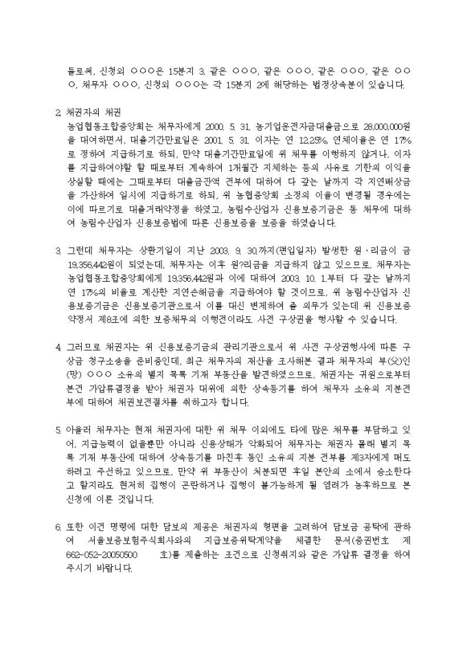 부동산가압류신청서(사전구상금(사망))(2)입니다.