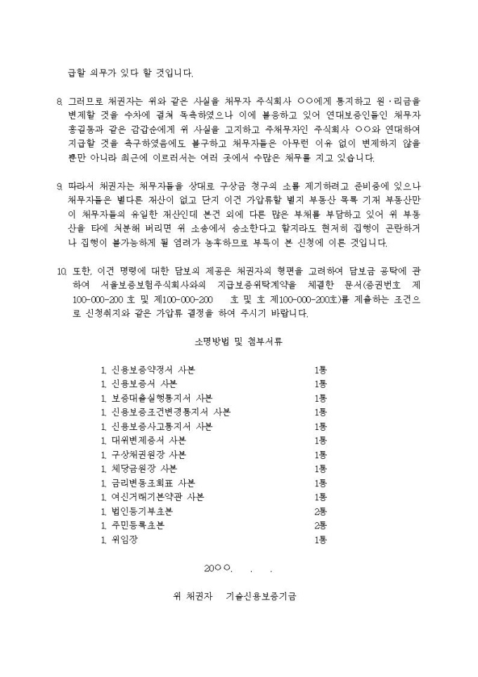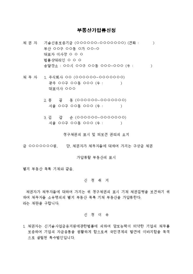 9,000원/월부동산가압류신청서(사후구상금(기술신용보증기금의 대위변제))입니다.