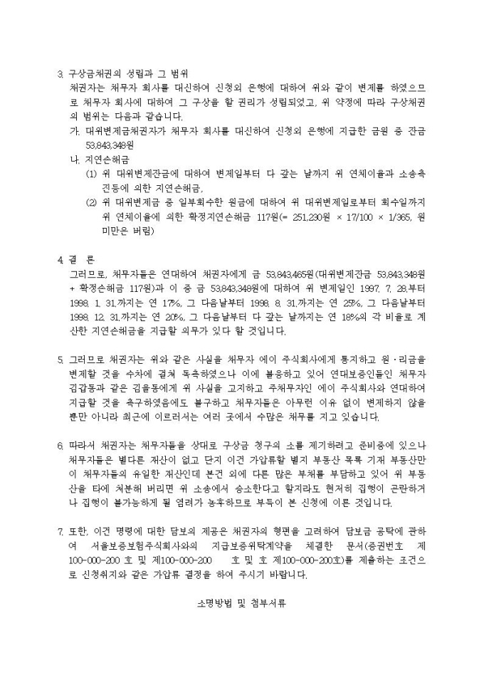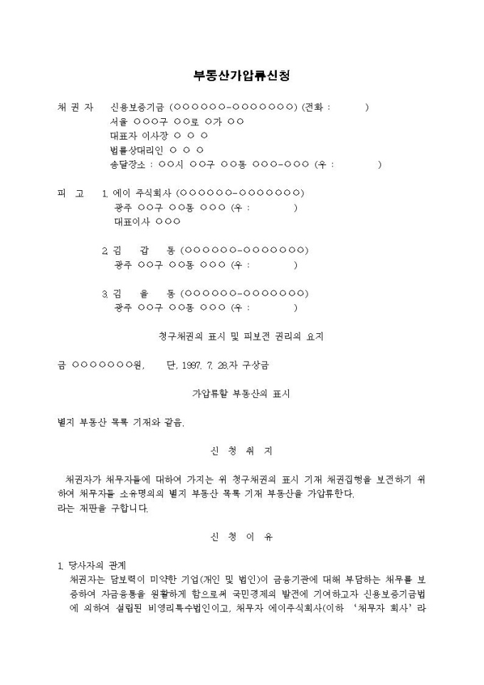 부동산가압류신청서(사후구상금(신용보증기금의 대위변제))(2)입니다.
