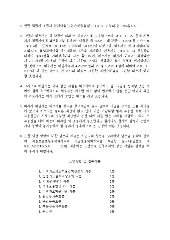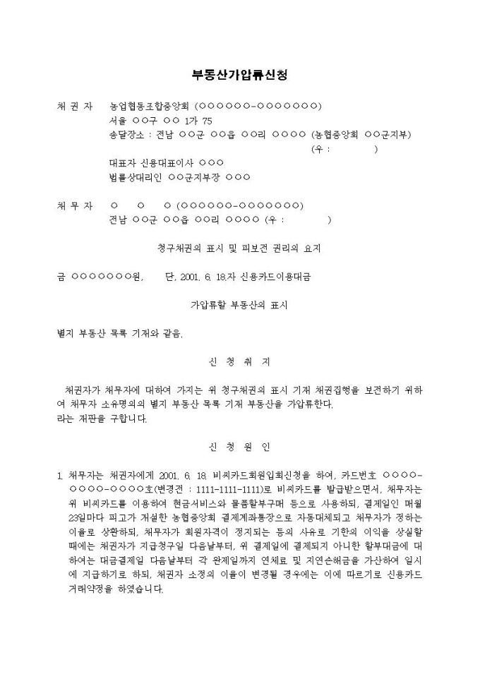 9,000원/월부동산가압류신청서(신용카드이용대금)입니다.