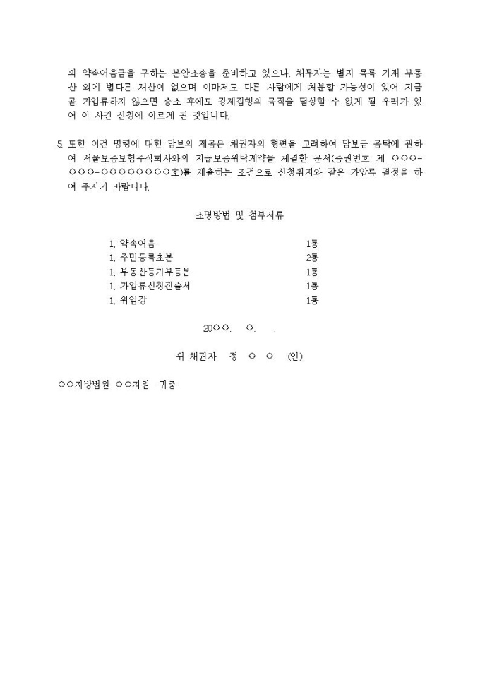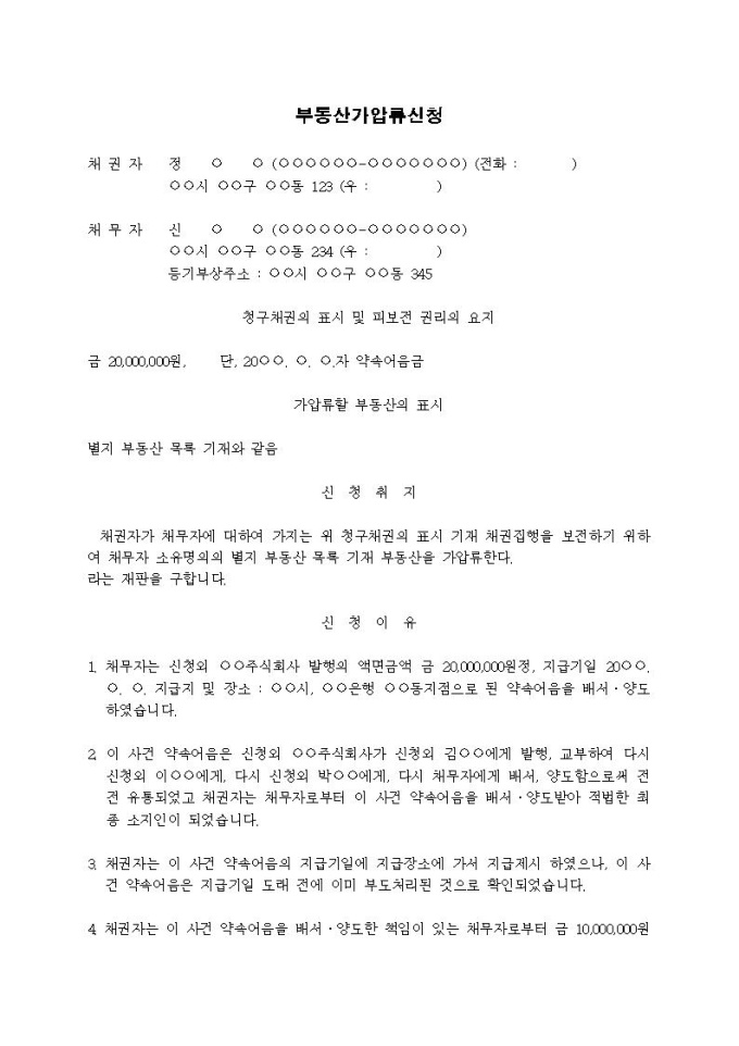 부동산가압류신청서(약속어음금)입니다.