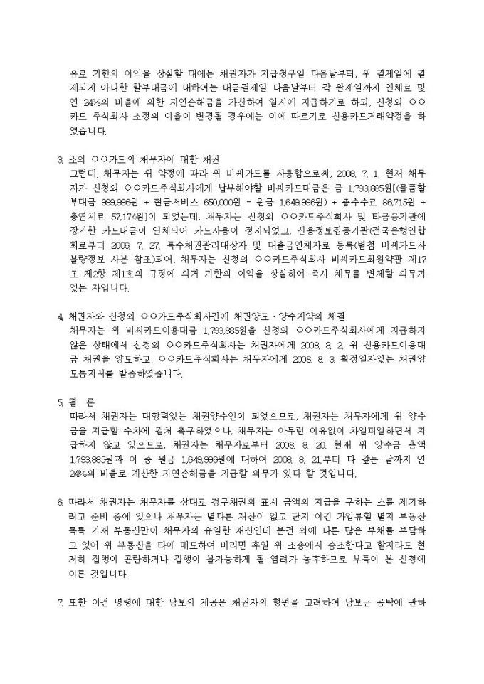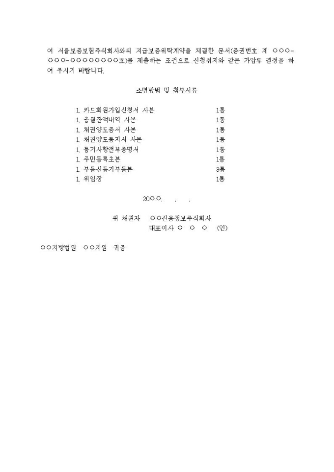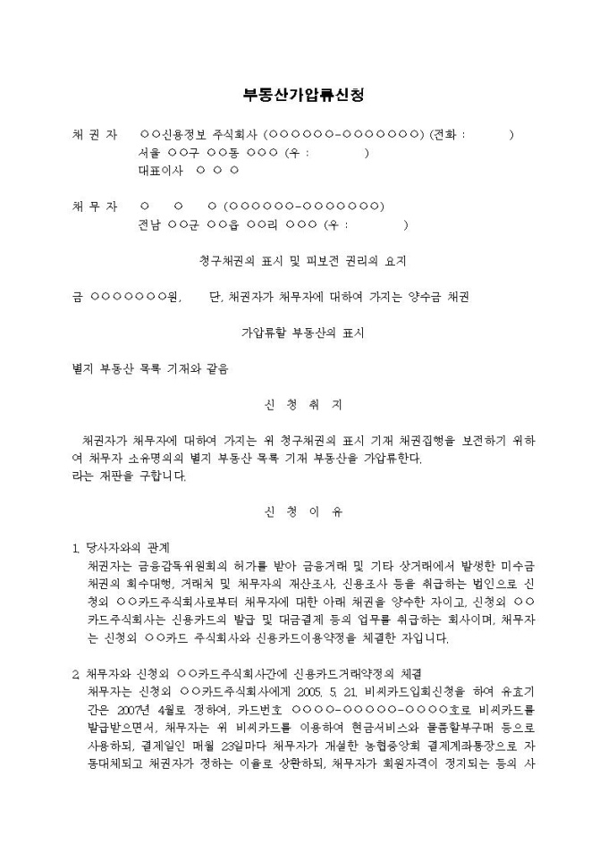 9,000원/월부동산가압류신청서(양수금(신용정보회사가 양수한 경우))입니다.