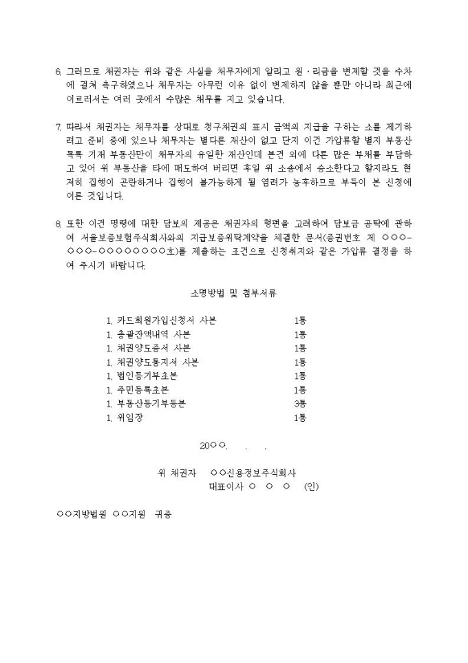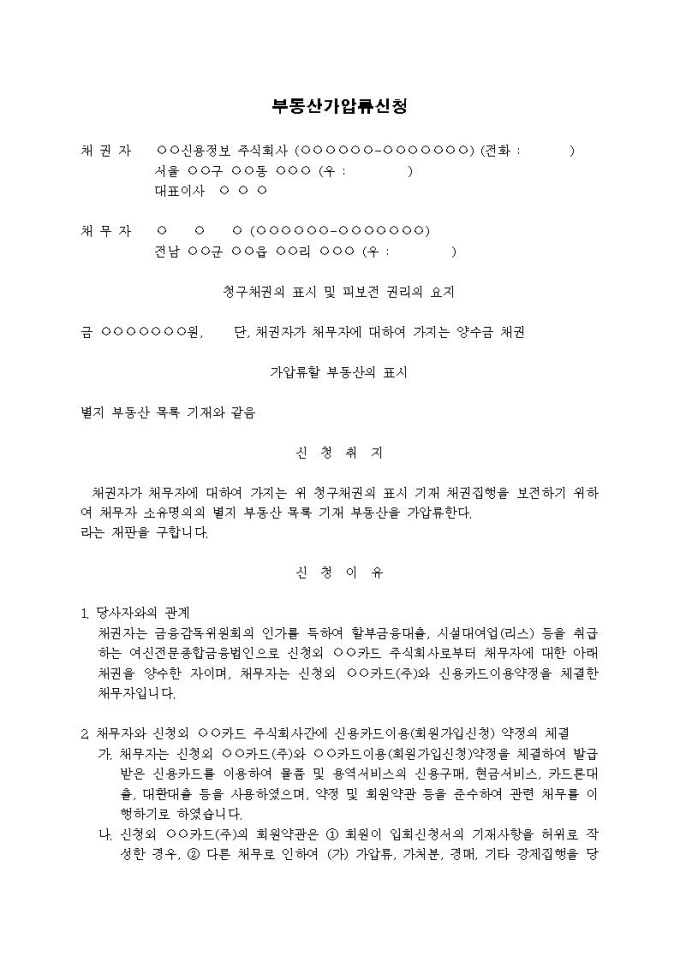 부동산가압류신청서(양수금(신용정보회사가 양수한 경우))(2)입니다.